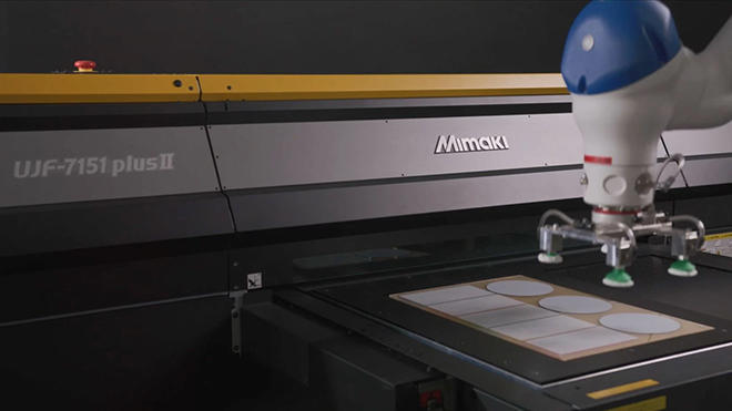 Mimaki將在drupa2024首次展示其此前在日本宣布的印刷流程自動(dòng)化系統(tǒng)。該系統(tǒng)結(jié)合了UV打印機(jī)和手臂機(jī)器人,能夠自動(dòng)完成打印介質(zhì)的放置、打印指令的執(zhí)行和成品的收集,顯著減少了操作員的勞動(dòng)量,減少了約90%的操作需求,從而有效應(yīng)對(duì)勞動(dòng)力短缺問題。