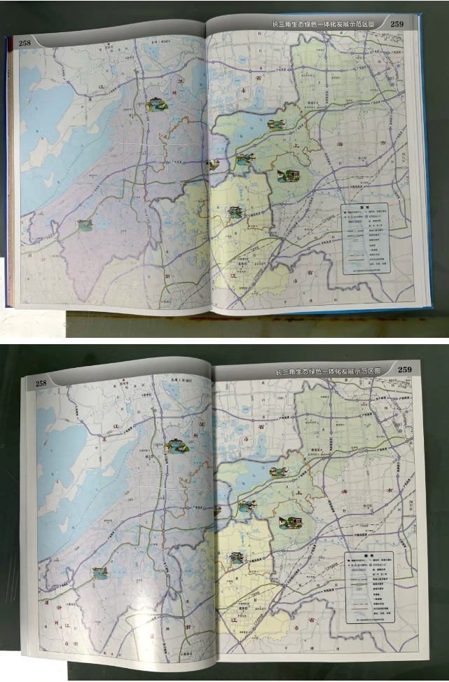 此外,這本地圖冊最小的文字或線條約為4.5Pt,且文件中有大比例的多色套印,印制完成后肉眼所見邊緣清晰、無鋸齒、套印精準(zhǔn)無偏色。