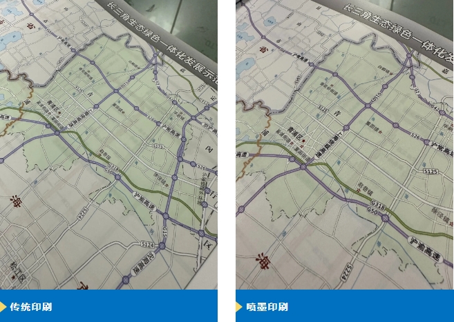 “在我們考察首臺高速噴墨印刷設(shè)備時,施潘德在行業(yè)率先做到了1200dpi×1200dpi的超高分辨率,而這臺銅版紙的分辨率同樣給我們帶來了驚喜。”王旭平回憶到,前不久上海新華承接了上海地圖出版社的一份地圖冊(《上海道路交通指南》)印制業(yè)務(wù),這本地圖冊上的街道需要四色套印,經(jīng)緯線及街道、公路、鐵路等線條非常細(xì),地圖冊中還有以淺色為主的、20%-30%大面積滿版色,要求使用105gms光粉銅版紙(俗稱光銅)印刷。