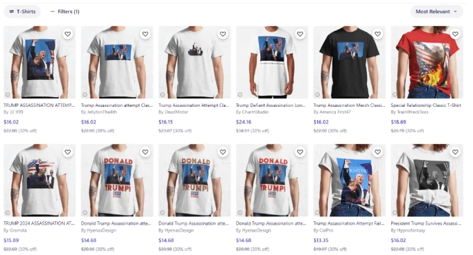 然而不到三小時(shí)后,帶有這一照片圖案的T恤迅速在商店和網(wǎng)店上架銷售,被命名為“特朗普T恤”,并印有他的競(jìng)選口號(hào):“Make America Great Again”。這迅速反應(yīng)的能力令人瞠目結(jié)舌。