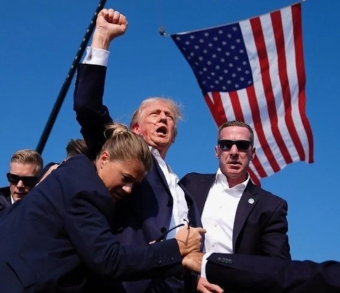 美東夏令時(shí)間2024年7月13日18時(shí)11分,美國(guó)前總統(tǒng)唐納德·特朗普在賓夕法尼亞州巴特勒農(nóng)場(chǎng)舉行的造勢(shì)活動(dòng)集會(huì)上遭槍擊受傷。特朗普演講遇刺后,他一只手高舉拳頭的照片迅速火遍全球。