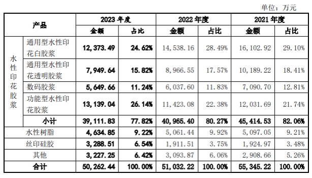 長聯(lián)科技是一家為紡織服裝企業(yè)提供多元化產品的紡織服裝印花整體解決方案提供商,產品主要應用于紡織服裝印花領域。根據(jù)沙利文的數(shù)據(jù)統(tǒng)計,2022年長聯(lián)科技水性印花膠漿銷售額在國內印花膠漿行業(yè)里排名第一。