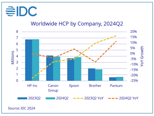 分廠商來看,奔圖連續(xù)幾年增速加快,第二季度同比增長11.2%,惠普和愛普生則分別增長0.1%和4.2%。值得注意的是,惠普對中國的出貨量大幅增長,愛普生在亞太(日本和中國除外)地區(qū)增長5.6%。愛普生在打印門檻高于其他行業(yè)的教育領(lǐng)域也持續(xù)增長。