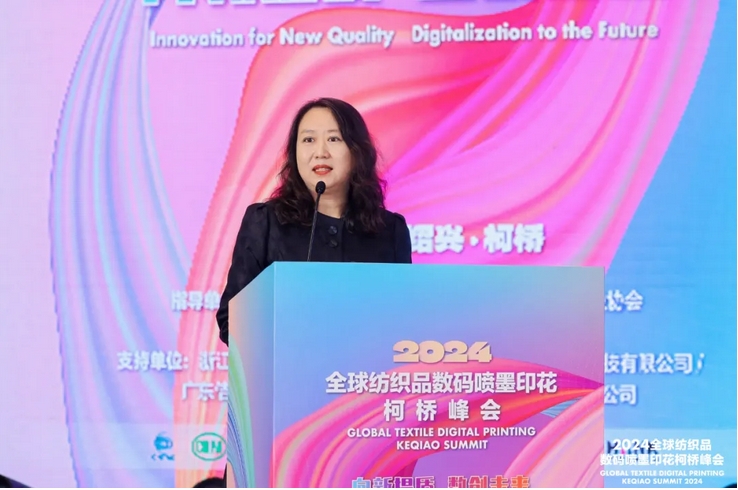 她指出,數(shù)碼噴墨印花技術(shù)發(fā)展日新月異,產(chǎn)業(yè)內(nèi)涵日益豐富,為紡織印染行業(yè)培育和發(fā)展新質(zhì)生產(chǎn)力、加快推進現(xiàn)代化產(chǎn)業(yè)體系建設(shè)注入了新的力量。為推動行業(yè)高質(zhì)量發(fā)展,她提出三點建議,一是加快關(guān)鍵核心技術(shù)攻關(guān),以科技創(chuàng)新推動產(chǎn)業(yè)升級;二是加強與數(shù)字經(jīng)濟深度融合,推進數(shù)字化智能化發(fā)展;三是堅持以消費者需求為導向,提升高端產(chǎn)品供給能力。