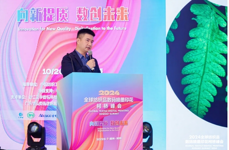 為進一步推動數(shù)碼噴墨印花行業(yè)提質(zhì)增效、向新發(fā)展,加快形成具有高效能、高技術(shù)和高質(zhì)量特征的新質(zhì)生產(chǎn)力,10月26日,以“向新提質(zhì) 數(shù)創(chuàng)未來”為主題的2024全球紡織品數(shù)碼噴墨印花柯橋峰會在柯橋舉行。與會代表圍繞國內(nèi)外紡織品數(shù)碼噴墨印花市場現(xiàn)狀、前沿技術(shù)、營銷模式、產(chǎn)品開發(fā)及人工智能在數(shù)碼印花領(lǐng)域應用等方面進行了深入研討和對接交流。