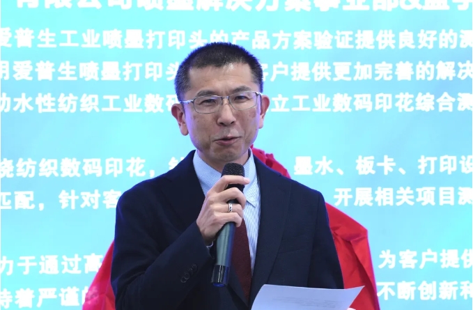 在技術分享環(huán)節(jié),愛普生(中國)有限公司噴墨解決方案事業(yè)部銷售技術和新應用開發(fā)部總監(jiān)高岳先生詳細介紹了愛普生在數(shù)碼印花領域的最新技術進展,并強調(diào)了打印頭技術在提升印花精度和效率方面的重要作用。