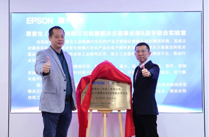 浙江藍宇數(shù)碼科技股份有限公司董事長郭振榮先生則強調(diào),藍宇股份始終專注于數(shù)碼印花墨水的研發(fā)與創(chuàng)新,此次聯(lián)合實驗中心的成立,將為愛普生打印頭用戶提供更全面的解決方案與技術支持,共同推動水性紡織工業(yè)數(shù)碼應用的發(fā)展,構建工業(yè)數(shù)碼印花的綜合測試平臺,助力行業(yè)邁上新臺階。