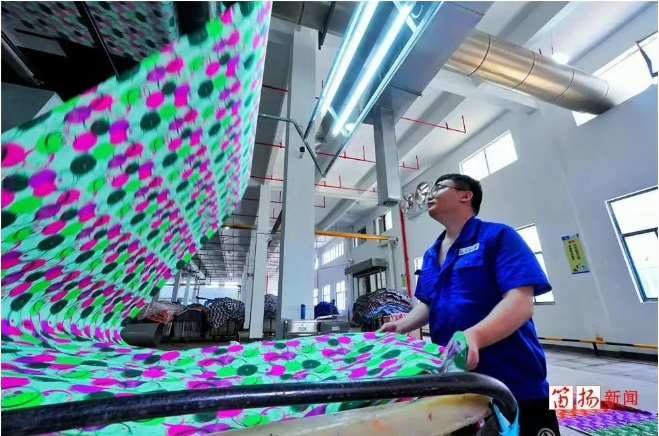 數(shù)碼印花產(chǎn)線的陸續(xù)投產(chǎn),讓章建木有了更多信心。今年一季度,公司發(fā)展勢(shì)頭強(qiáng)勁,3組數(shù)據(jù)非常亮眼:產(chǎn)值同比增長(zhǎng)21.15%,稅收同比增長(zhǎng)17.61%,出口同比增長(zhǎng)31.55%。高揚(yáng)的數(shù)據(jù)中蘊(yùn)藏著高質(zhì)量發(fā)展的動(dòng)能。
