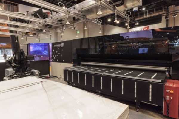 在自動(dòng)化方面,該機(jī)型提供從基礎(chǔ)電動(dòng)送料到全機(jī)器人化生產(chǎn)的靈活配置。展會(huì)現(xiàn)場(chǎng)展示的樣機(jī)搭載了Max Flex RTR卷材管理系統(tǒng)和Max Bot機(jī)械臂系統(tǒng),可實(shí)現(xiàn)剛性介質(zhì)的智能裝卸。Jancart補(bǔ)充道:"智能自動(dòng)化生態(tài)與專用墨水系統(tǒng)的結(jié)合,確保了設(shè)備在剛性材料、柔性基材和特種介質(zhì)印刷領(lǐng)域的持續(xù)競(jìng)爭(zhēng)力。"