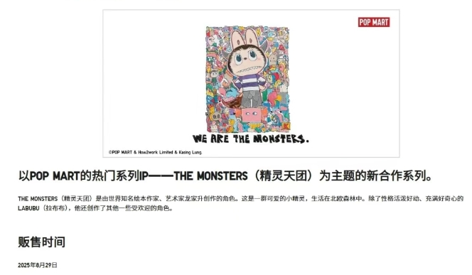 6月16日,優(yōu)衣庫官宣與泡泡瑪特旗下人氣IP “THE MONSTERS” 再度聯(lián)手,推出全新UT系列,主打LABUBU印花圖案的T恤、衛(wèi)衣等成人及兒童服飾,售價(jià)從79元至199元不等,將于8月29日正式上市。