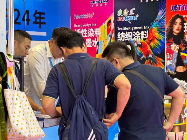 此外,鴻盛數(shù)碼展位也展示了用免抖粉燙金方案以及環(huán)保乳膠方案打印的樣品,作為全系列紡織噴墨墨水生產(chǎn)商,鴻盛數(shù)碼噴墨墨水具備色譜齊全,顏色靚麗,色牢度高,安全環(huán)保等優(yōu)點,其豐富的配色方案可以滿足不同客戶的印花需求。經(jīng)過二十多年的行業(yè)深耕,鴻盛數(shù)碼得到了行業(yè)的認可和贊譽,其出色的打印效果吸引了大批觀眾駐足欣賞交流。