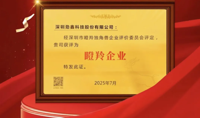 憑借突出的創(chuàng)新能力、高速的成長曲線及巨大的發(fā)展?jié)摿?,勁鑫科技?025年入選深圳市“瞪羚企業(yè)”名單。此前,公司還連續(xù)入選國家級專精特新“小巨人”企業(yè)、國家級重點“小巨人”名單,綜合實力與發(fā)展?jié)摿Λ@得官方及行業(yè)的高度認可。