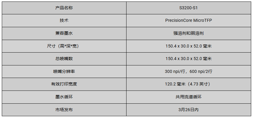 Epson S3200-S1 打印頭規(guī)格及市場發(fā)布