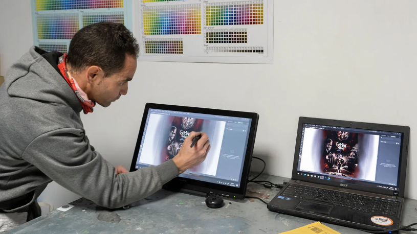 Sergio用平板電腦進(jìn)行設(shè)計(jì)并將作品數(shù)字化,使用BN-20進(jìn)行打印,從而實(shí)現(xiàn)更加靈活的打印和修改。