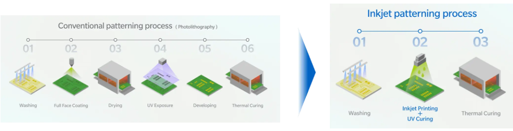 印刷電路板的制造過程中,需要涂覆并形成阻焊層,這是一種用于保護電路的絕緣薄膜。雖然光刻技術(shù)被廣泛用于形成阻焊層圖案,但噴墨技術(shù)也常被采用。