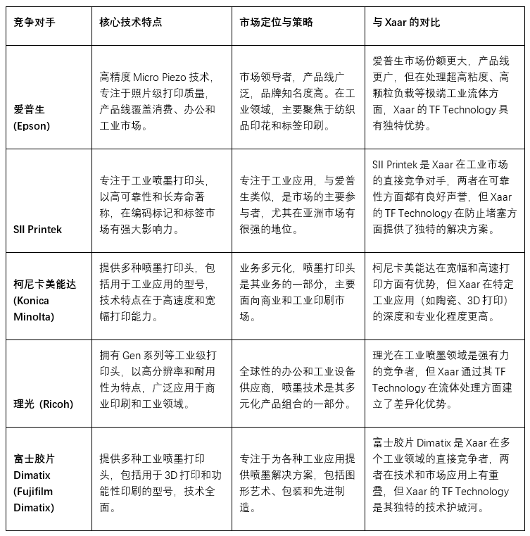 Table 1: Xaar與主要競爭對手的技術(shù)與市場對比分析