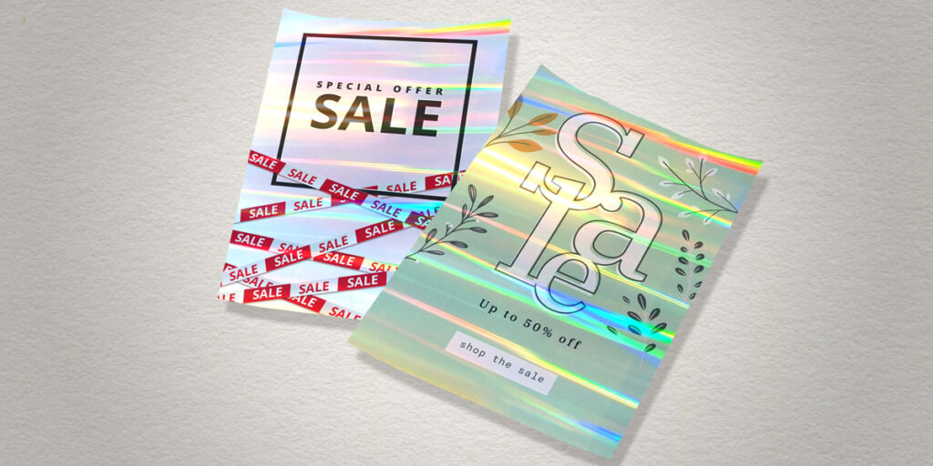 這款產(chǎn)品是一種特殊的介質(zhì),其銀色底面經(jīng)過特殊處理,呈現(xiàn)出弧形彩虹色反光效果。雖然它是靜態(tài)印刷材料,但根據(jù)光照和視角的不同,會(huì)呈現(xiàn)出類似極光的柔和光澤,從而營(yíng)造出深度和立體感。這使得在海報(bào)和視覺裝飾中充分利用光影效果成為可能。