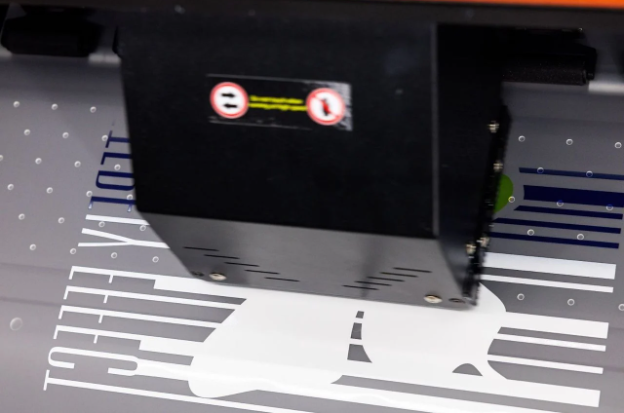 首先,將PET薄膜放入DTF打印機(jī)中,在那里將整個(gè)設(shè)計(jì)彩色打印出來(lái)。