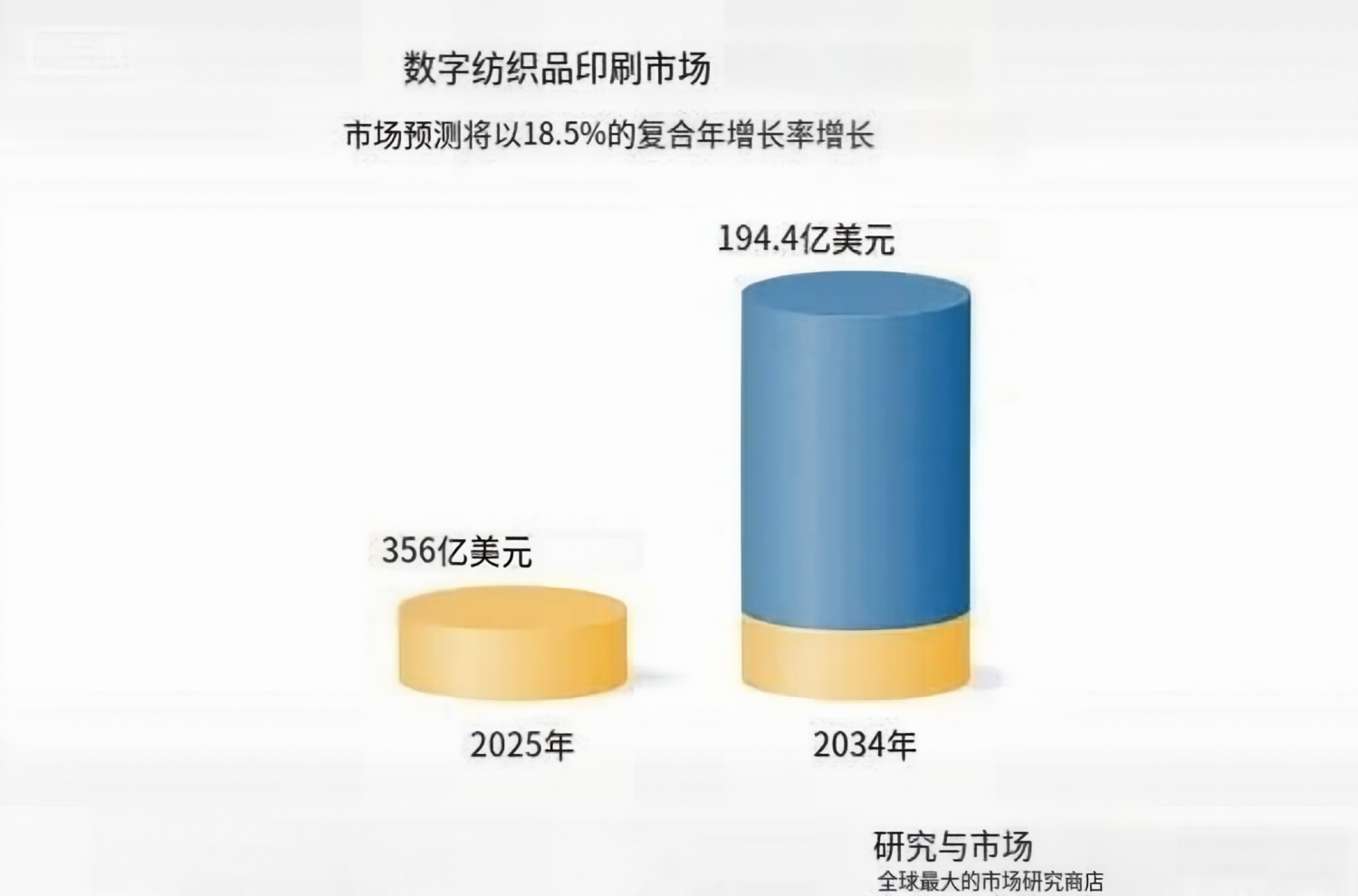 2025年11月4日(GLOBE NEWSWIRE)—— ResearchAndMarkets.com新增了一份題為《數(shù)碼紡織印花市場(chǎng)規(guī)模及份額展望——預(yù)測(cè)趨勢(shì)及增長(zhǎng)分析報(bào)告(2025-2034)》的報(bào)告。2024年,全球數(shù)碼紡織印花市場(chǎng)規(guī)模約為35.6億美元。預(yù)計(jì)在2025年至2034年的預(yù)測(cè)期內(nèi),該市場(chǎng)將以18.50%的復(fù)合年增長(zhǎng)率增長(zhǎng),到2034年達(dá)到約194.4億美元。