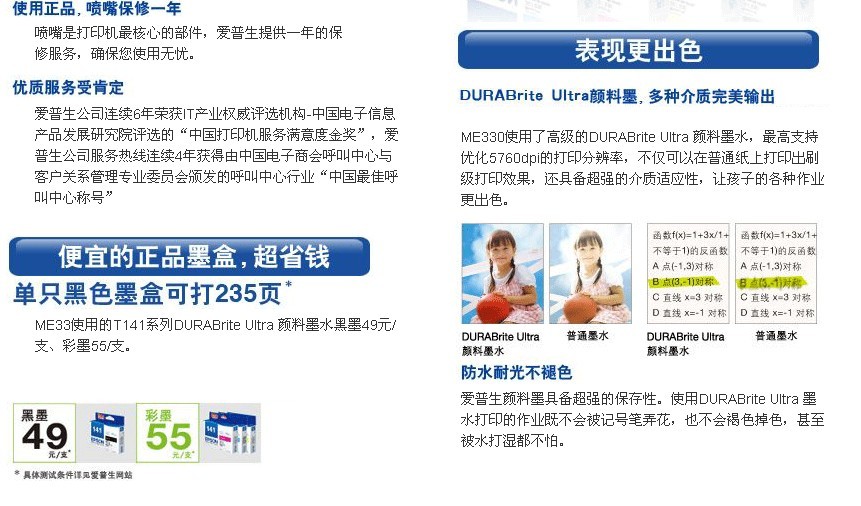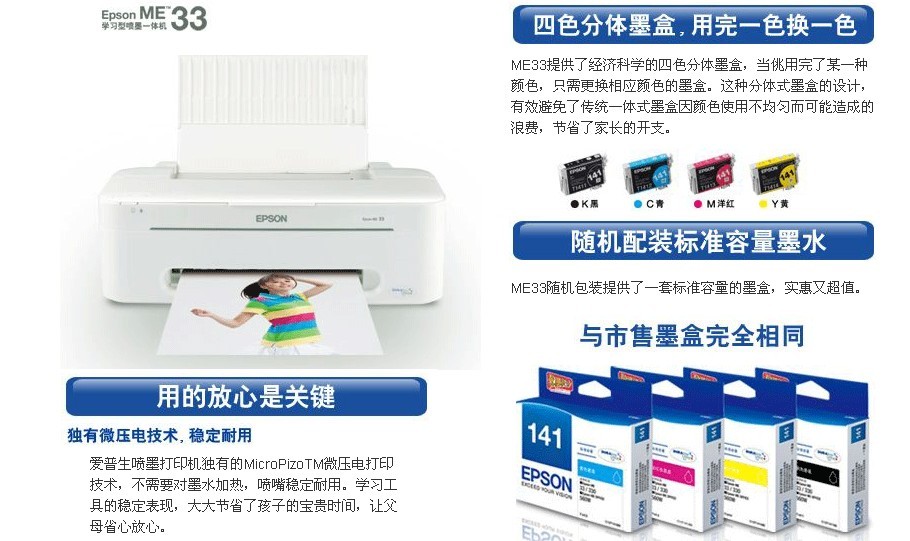| 墨盒 | T1411(黑色)T1412(青色)T1413(洋紅色)T1414(黃色)分體墨盒 |