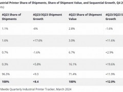 2023年第四季度,全球工業(yè)打印機(jī)出貨量上漲