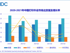 IDC:2021年第四季度中國(guó)打印外設(shè)市場(chǎng)出貨量為494.2萬臺(tái) 同比下降10.3%