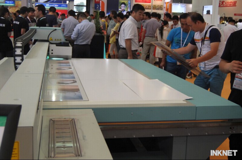 本次展出的新款UV卷筒式噴繪機(jī)UVISTAR,特別添加白墨打印功能,是針對(duì)大幅面POP海報(bào)和戶外廣告業(yè)務(wù)研發(fā)的一款混合式噴繪機(jī)。最大承印材料幅面達(dá)5米,生產(chǎn)能力可高達(dá)353㎡/小時(shí)。與同類產(chǎn)品相比,其低廉的打印成本、高品質(zhì)的輸出質(zhì)量及其高效的生產(chǎn)能效使其受到廣泛關(guān)注。