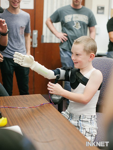 3D打印技術(shù)用于醫(yī)療領(lǐng)域,不斷幫醫(yī)生破解各種難題,矯形鞋墊、打印人體器官等等。近日,3D打印再建奇功,打印假肢,讓獨(dú)臂小男孩真正擁抱母親。獨(dú)臂小男孩Alex Pring來自美國(guó)佛羅里達(dá)格羅夫蘭天生就失去了右臂,他人生最大的愿望是有一天能真正的擁抱一下自己的媽媽。其母親為實(shí)現(xiàn)他的愿望,走醫(yī)問藥,但苦于義肢價(jià)格太高和更換周期短,Alex Pring的媽媽只好放棄。經(jīng)多方打聽,中佛羅里達(dá)大學(xué)(UCF)的航空航天工程專業(yè)博士生Albert Manero想要幫助這個(gè)男孩,并成功地為其打印了假肢,讓其實(shí)現(xiàn)了他最大的愿望。