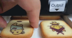 日本推出的零食專用噴墨打印機(jī),可以在小餅干,馬卡龍,棉花糖等小零食上噴上自己喜歡的圖案,萌死了~