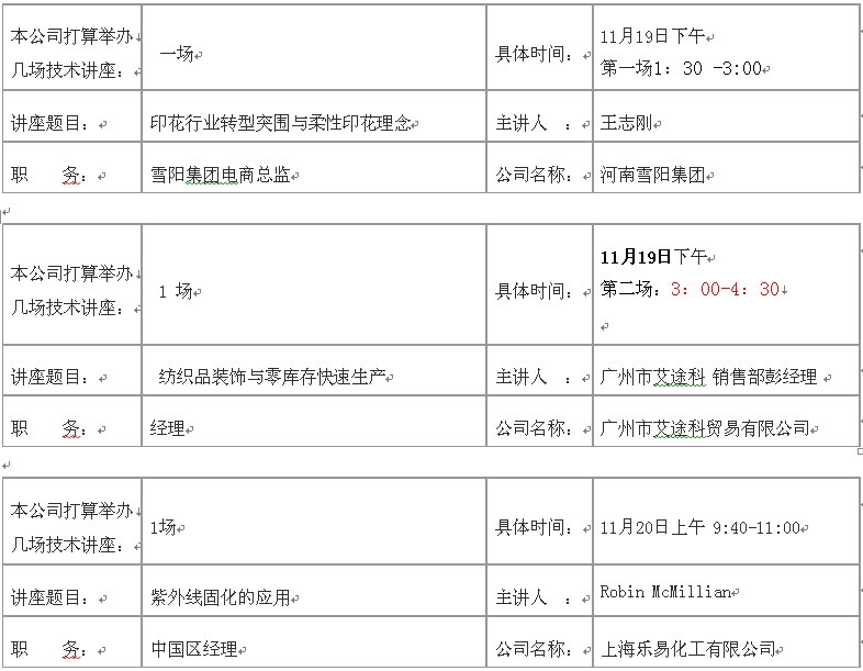 技術(shù)講座場次安排