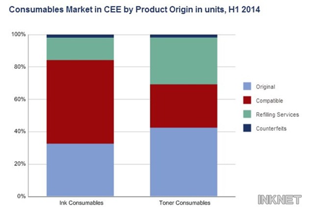 據(jù)IDC消息,2014年上半年中歐和東歐地區(qū)的整體打印耗材出貨量同比減少了6.4%。
