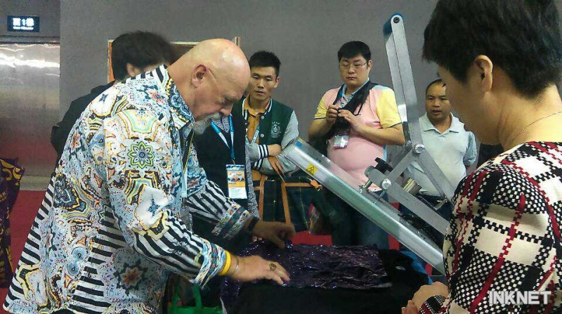 展會期間另外一大亮點(diǎn)就是查理印花培訓(xùn)區(qū),服裝印刷專家Charlie Taublieb現(xiàn)場與大家分享服裝裝飾以及紡織品印花經(jīng)驗(yàn),手把手教導(dǎo)T恤印花,簡單易學(xué),觀眾熱情高漲。貼膜專家Ole Soleskin現(xiàn)場的精彩表演不斷為觀眾帶來驚喜。Ole精湛而先進(jìn)的技藝,加上幽默的談吐令現(xiàn)場觀眾連連稱贊,氣氛輕松活躍。