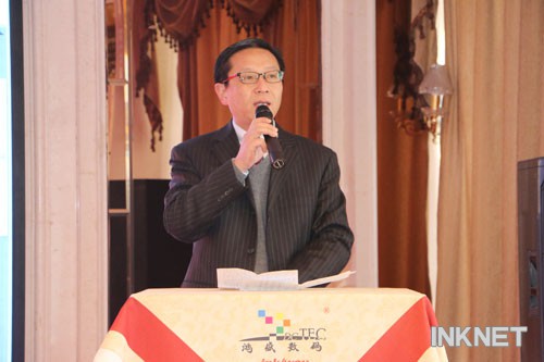 鴻盛數(shù)碼董事長秦國勝秦總上臺致辭,總結(jié)2014年度工作、展望2015企業(yè)發(fā)展。