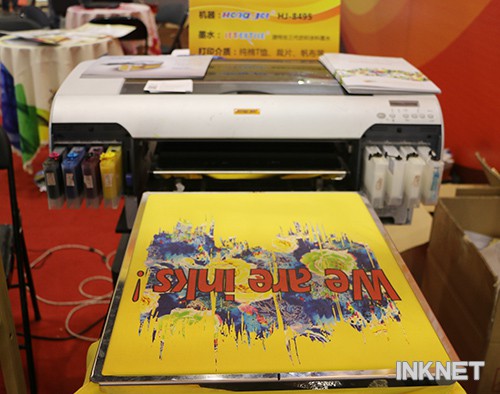 全球紡織品數(shù)碼噴墨印花量從2001年開始幾乎每?jī)赡攴环尸F(xiàn)了加速發(fā)展的態(tài)勢(shì)。目前,隨著我國(guó)社會(huì)經(jīng)濟(jì)發(fā)展,數(shù)碼噴墨印花已滲透到廣告、設(shè)計(jì)、服裝、家紡、汽車裝飾、個(gè)性化定制、網(wǎng)店等紡織品各個(gè)領(lǐng)域。本次中原廣告展上,鴻盛數(shù)碼現(xiàn)場(chǎng)展示了“捷特絲®”三代紡織涂料墨水直噴T恤數(shù)碼印花工藝,通過“捷特絲®”三代紡織涂料墨水彩墨和白墨的完美結(jié)合,一幅色彩靚麗、清晰自然的圖案躍然“布”上,一款個(gè)性化定制的黃色T恤在瞬間完美亮相。而在紡織品上直接印花、完全無(wú)水印染的數(shù)碼噴墨印花工藝也吸引了眾多參展客戶駐足欣賞。