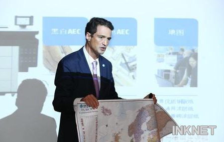 惠普打印與信息產(chǎn)品集團(PPS)亞太及日本地區(qū),圖形印藝解決方案事業(yè)部大幅面打印業(yè)務(wù)董事及總經(jīng)理Javier Larraz介紹HP PageWide XL目前業(yè)界最快的大幅面黑白和彩色打印機系列