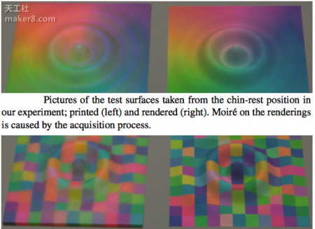 簡單地說,這些研究人員所做的就是,他們創(chuàng)造了一種算法,這種算法能夠使一臺3D打印機(jī)(比如Stratasys公司的Objet500Connex3)直接使用一種分層半色調(diào)方法控制每個體素的顏色和材質(zhì)。所謂的半色調(diào),是利用網(wǎng)點(diǎn)來模型一個對象的連續(xù)色調(diào)變化。