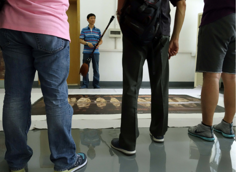在二丈純手工宣紙上打印攝影作品,更是絕無僅有,也將成為攝影史上的一個(gè)里程碑。該作品運(yùn)用人民日報(bào)自主研發(fā)的打印技術(shù),再經(jīng)作者用定制的巨型宣筆手書、蓋章落款。獨(dú)幅獨(dú)款,更顯珍稀。