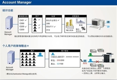柯尼卡美能達(dá)PSES企業(yè)管理套件成本分析功能示意圖