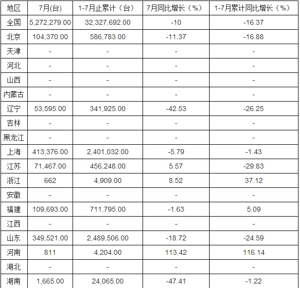2015年1-7月全國打印機產(chǎn)量分省市統(tǒng)計表