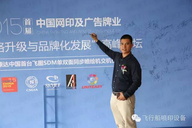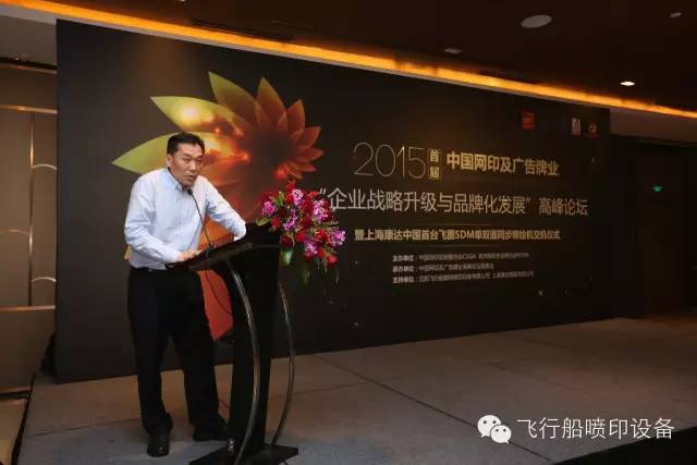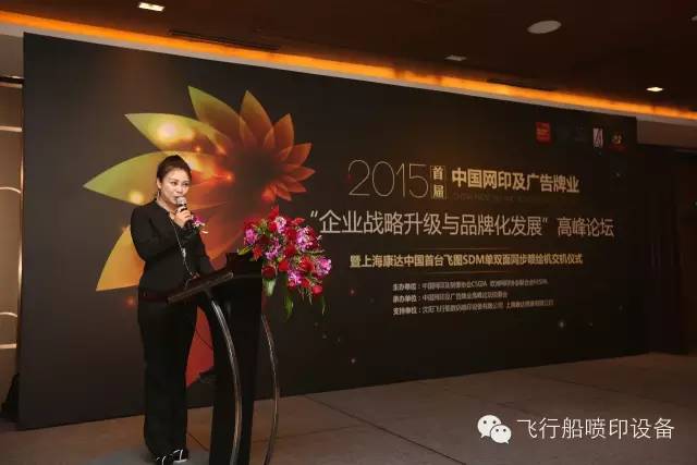 2015首屆中國網(wǎng)印及廣告行業(yè)“企業(yè)戰(zhàn)略升級(jí)與品牌化發(fā)展”高峰論壇暨上海康達(dá)噴畫有限公司飛圖SDM單雙面同步噴繪機(jī)交機(jī)儀式于10月22日在上海卓美亞喜瑪拉雅酒店召開。本次論壇由中國網(wǎng)印協(xié)會(huì)、歐洲網(wǎng)印協(xié)會(huì)聯(lián)合會(huì)FESPA共同主辦,由中國網(wǎng)印及廣告打印高峰論壇組委會(huì)承辦,沈陽飛行船數(shù)碼噴印設(shè)備有限公司、上??颠_(dá)噴畫有限公司協(xié)辦。