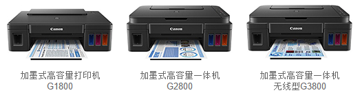 2015年11月6日,佳能(中國)有限公司在北京宣布推出三款PIXMA騰彩系列噴墨打印機(jī)新品:加墨式高容量打印機(jī)G1800、加墨式高容量一體機(jī)G2800及加墨式高容量一體機(jī)無線型G3800,能夠?qū)崿F(xiàn)黑白文檔6,000頁、彩色文檔7,000頁的海量打印1,為SOHO及小微企業(yè)用戶帶來滿足多樣化打印需求的新選擇。