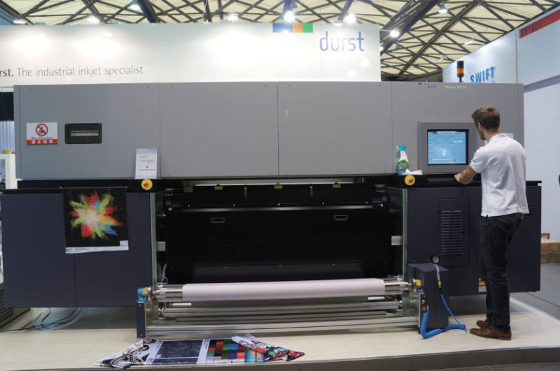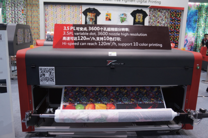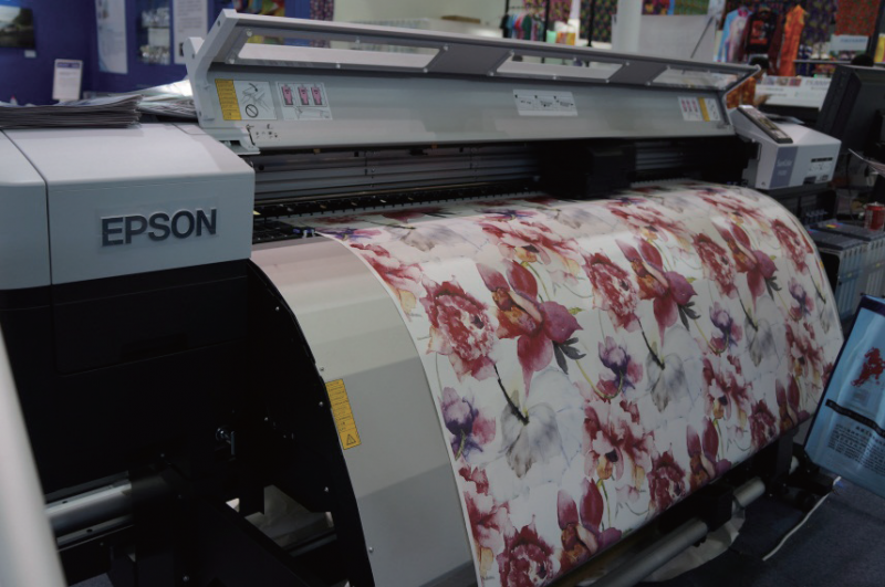 展會上,Epson DX系列噴頭被廣泛應(yīng)用各類方案,包括轉(zhuǎn)移紙打印、直噴打印、導(dǎo)帶印花、涂料印花等。