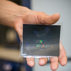 該項(xiàng)研究的第一作者Aleksandr Yakovlev解釋道:“傳統(tǒng)的全息圖像打印方式包括好幾個(gè)階段,耗時(shí)很長。首先要制作主全息圖,通常使用激光在光敏聚合物薄層上作記錄。然后將聚合物干燥,洗出圖像,去掉未曝光的部分。隨后將所得的模版轉(zhuǎn)移到一個(gè)金屬基體,最后在透明聚合物薄膜的表面上壓印全息微起伏。”