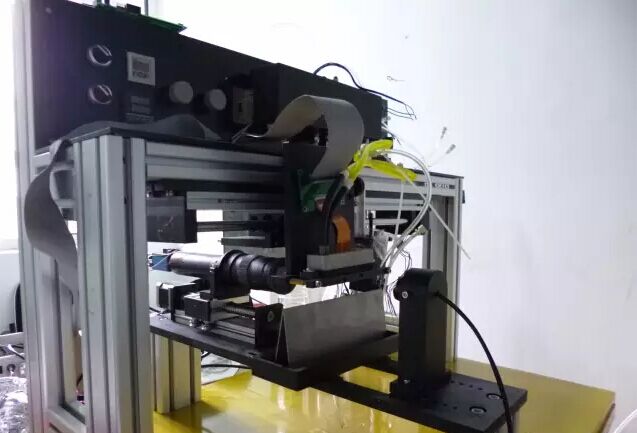 墨滴觀測系統(tǒng),是配有CCD高速攝像機檢測系統(tǒng),拍攝并記錄數(shù)據(jù)圖像視頻。任何廠家的噴頭控制板只需接入觸發(fā)信號,就可以觀測從打印頭噴出的每滴墨水的飛行軌跡,可以自動測量噴墨墨點速度、體積,從而來判斷噴頭控制板卡電壓、脈沖波形與墨水之間匹配狀態(tài)與穩(wěn)定性。