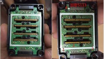 請(qǐng)大家看下面這張對(duì)比圖片,左側(cè)這只是沒(méi)有加密的愛普生5113噴頭,右側(cè)這只是經(jīng)過(guò)加密的噴頭。