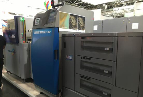 展會(huì)現(xiàn)場(chǎng),小編近距離的看到了這款MGI Meteor 8700XL+數(shù)碼印刷機(jī),它繼承了飛達(dá)專(zhuān)利,可進(jìn)行3301200mm自動(dòng)送紙印刷。8700XL+擁有其他數(shù)碼印刷設(shè)備不能匹及的套準(zhǔn)精度,在無(wú)需任何表面預(yù)處理的情況下可對(duì)各種類(lèi)型紙張、信封、PVC、Polyester、Teslin、P.E.T等材質(zhì)進(jìn)行直接印刷,能輕松完成勒口、環(huán)襯、封腰、超長(zhǎng)拉頁(yè)、全景照片、信封、帶磁條的安全卡片、不干膠、控制面板(聚碳酸酯)等超大幅面及特種應(yīng)用的產(chǎn)品不停機(jī)生產(chǎn)。為印刷廠(chǎng)匹配傳統(tǒng)膠印業(yè)務(wù)流程,利用數(shù)碼技術(shù)擴(kuò)大業(yè)務(wù)范圍提供了全新的生產(chǎn)差異化模式,從而大幅的提高了印刷廠(chǎng)的盈利能力。