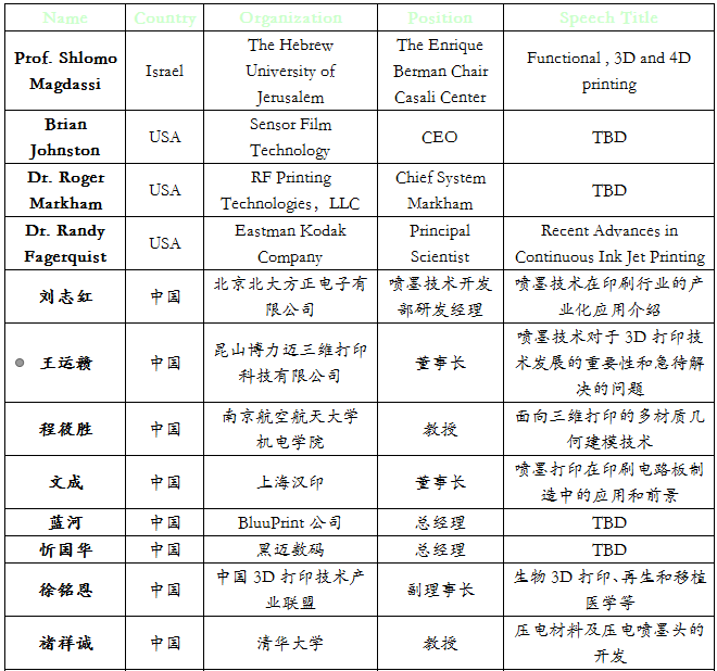 本屆噴墨數(shù)碼制造和3D打印國(guó)際會(huì)議邀請(qǐng)了國(guó)際國(guó)內(nèi)相關(guān)研究單位專(zhuān)家和企業(yè)高級(jí)工程技術(shù)人員共同交流噴墨數(shù)碼制造與3D打印技術(shù)和應(yīng)用的最新進(jìn)展和未來(lái)發(fā)展趨勢(shì)。