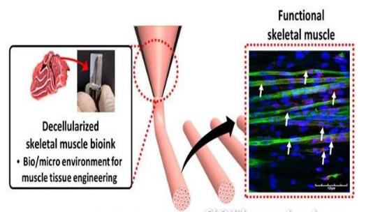 韓國浦項(xiàng)科技大學(xué)機(jī)械工程系教授Cho Dong-woo、生物工程學(xué)博士Choi Young-jin攜手合作,利用3D細(xì)胞打印技術(shù)、生物墨水成功制造世界第一塊人工肌肉,它和人類肌肉幾乎一樣。