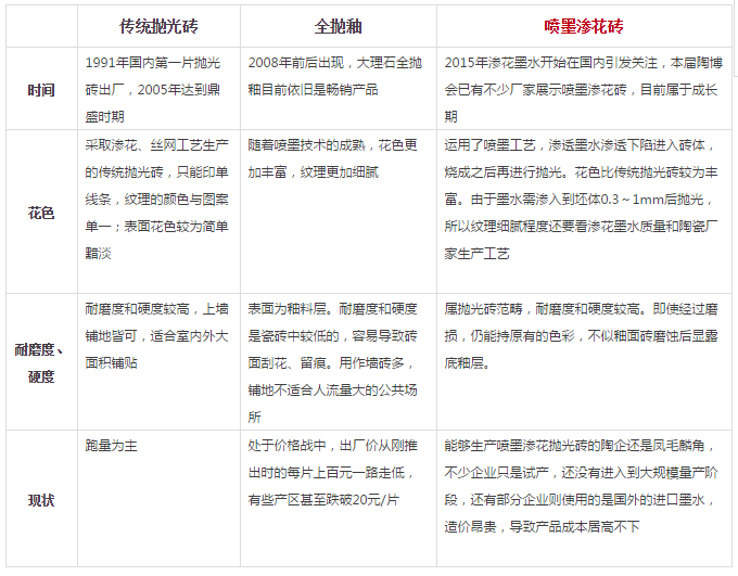 但近年來,隨著滲花墨水的興起,拋光磚似乎看到了反撲市場的希望,有不少行業(yè)人士都預估,滲花墨水的突破將會引發(fā)拋光磚的紋理革命,拋光磚也會因此重新回歸。