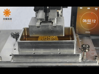 隨即,在光棱科技研發(fā)工程師的帶領(lǐng)下,記者看到了這臺超高速液體連面3D打印機。工作人員在計算機完成切片后,開始向記者現(xiàn)場演示打印一座高度約8cm的埃菲爾鐵塔,他們將快速固化的光敏樹脂倒進機器的樹脂槽中,并在計算機上點擊打印操作。機器在啟動后,上方像是吸盤一樣的東西,慢慢從樹脂池中向上抽離。